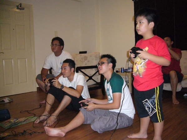 我們晚上帶他去了他最愛的餐廳"chillis", 他叫了兩份他最愛的餐點和vanilla coke, wooh...他一邊吃一邊滿足的發出"so nice"的讚美,wombat 和我真的是覺得又好笑又心疼,在妹妹還沒有出世之前他是家裡的小霸王,要什麼有什麼,自從妹妹出世後,爸媽要照顧剛出生的妹妹,他自然有一點被冷落,也沒什麼機會出門,wombat和我最近又很忙,今天真的是要好好讓臉得意享受一下,吃完晚餐後我們帶他來家裡,wombat陪他打機打到他痛快,半夜三更才送他回家,不是他累了,是叔叔打到睡著了~